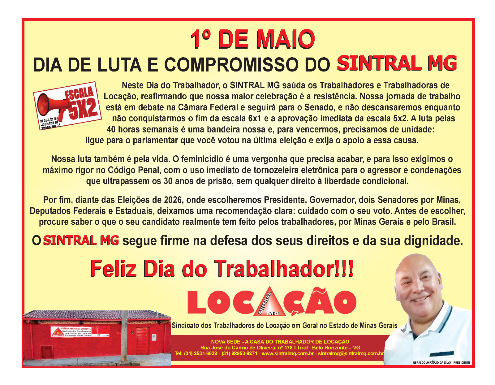 O SINTRAL-MG tem abrangência em todo o território do Estado de Minas Gerais e representa a categoria profissional dos empregados nas empresas de locação, incluindo locadoras de veículos, empresas de locação de máquinas e de equipamentos agrícolas, industriais e comerciais; ferramentas; equipamentos médicos e hospitalares; aparelhos eletrônicos; locação de artigos para festas; vestuários; equipamentos e materiais esportivos e de lazer; sinucas e bilhares; informática; banheiros químicos e em locação de estruturas tubulares para montagem de palco.